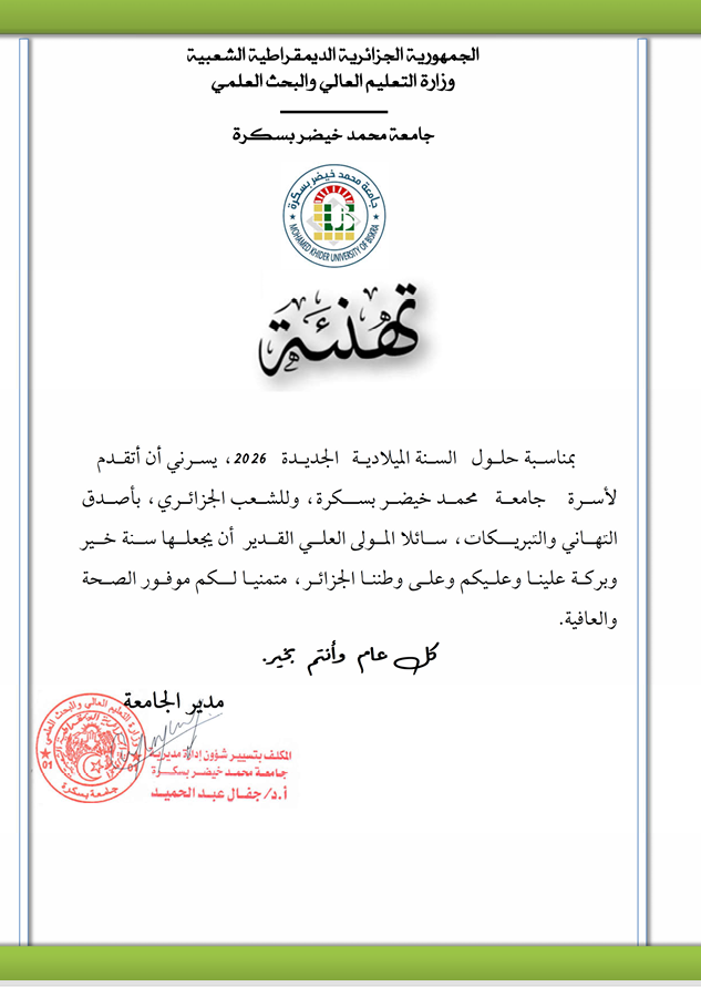 تهنئة بمناسبة حلول السنة الميلادية 2026