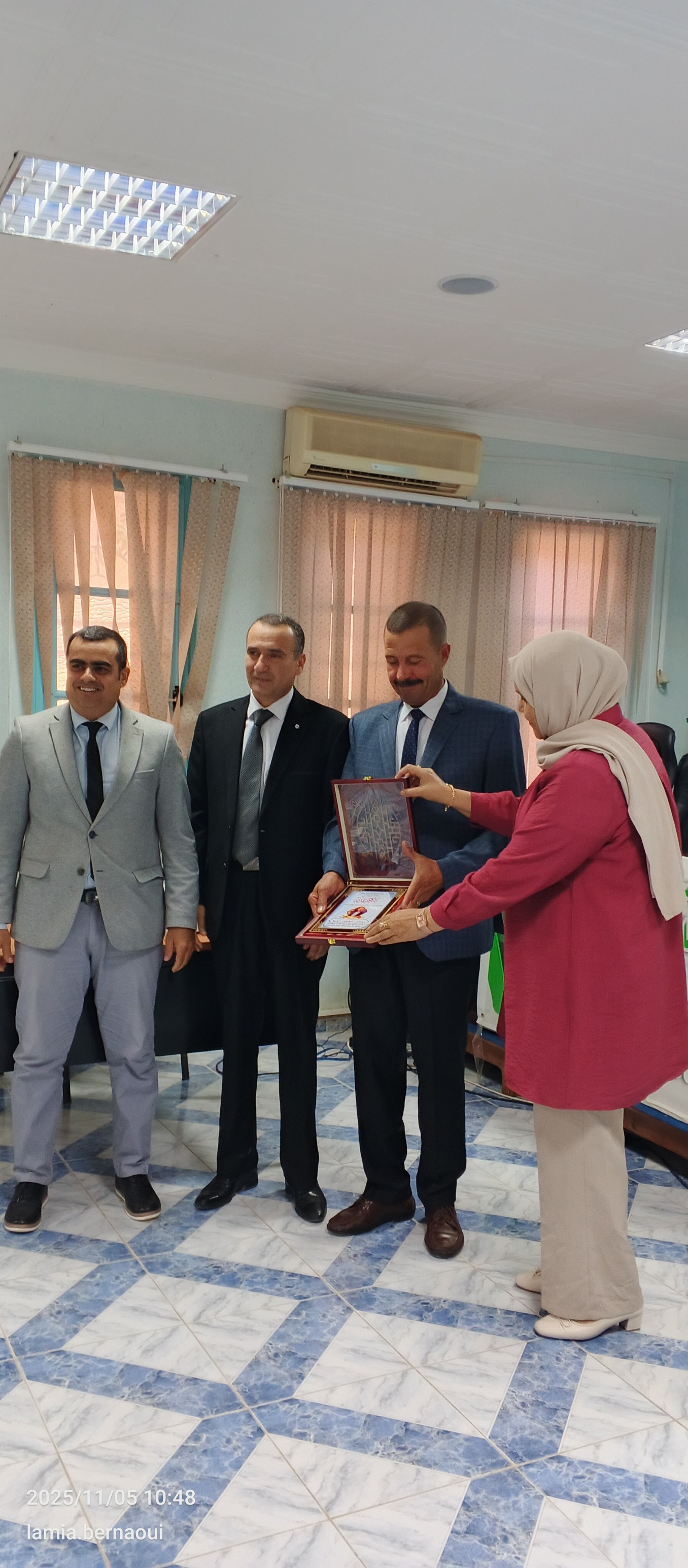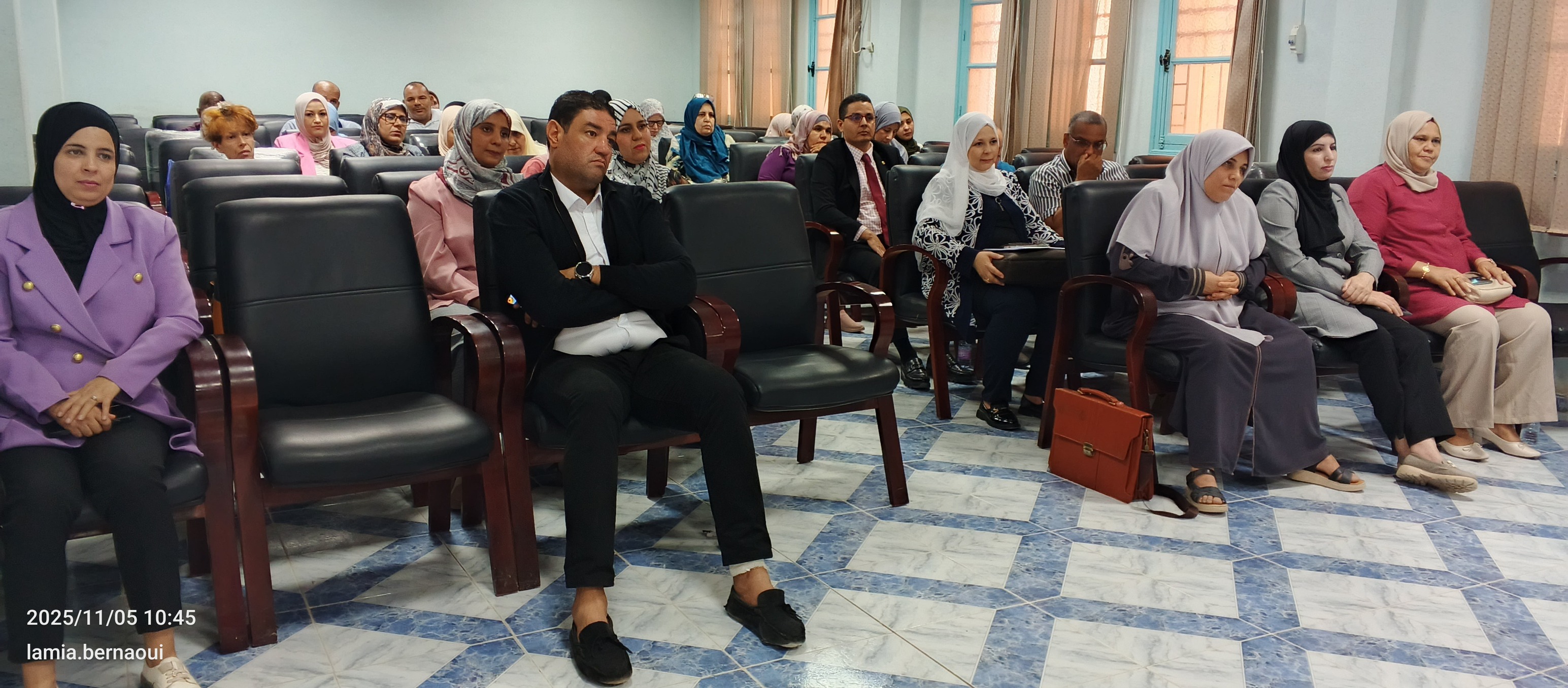 جرى الحفل بحضور السيدة نائب العميد المكلف بما بعد التدرّج والبحث العلمي، الأستاذة صليحة سبقاق ونائب العميد المكلف بشؤون الطلبة الأستاذ علي بخوش والسيد رئيس قسم اللغة العربية الأستاذ الأمين ملاوي، الى جانب لفيف من أساتذة القسم وموظفي الكلية، ممن شاركوا جميعاً في هذا الالتفاتة النبيلة التي تعكس روح الاعتراف بالجميل والتقدير للعمل.