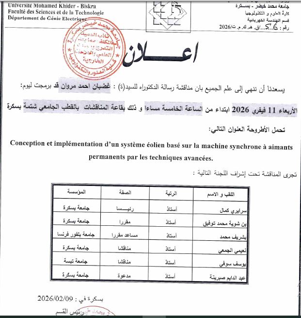 Adresse : Université de Biskra,  BP 145 RP,