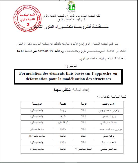 Adresse : Université de Biskra,  BP 145 RP,