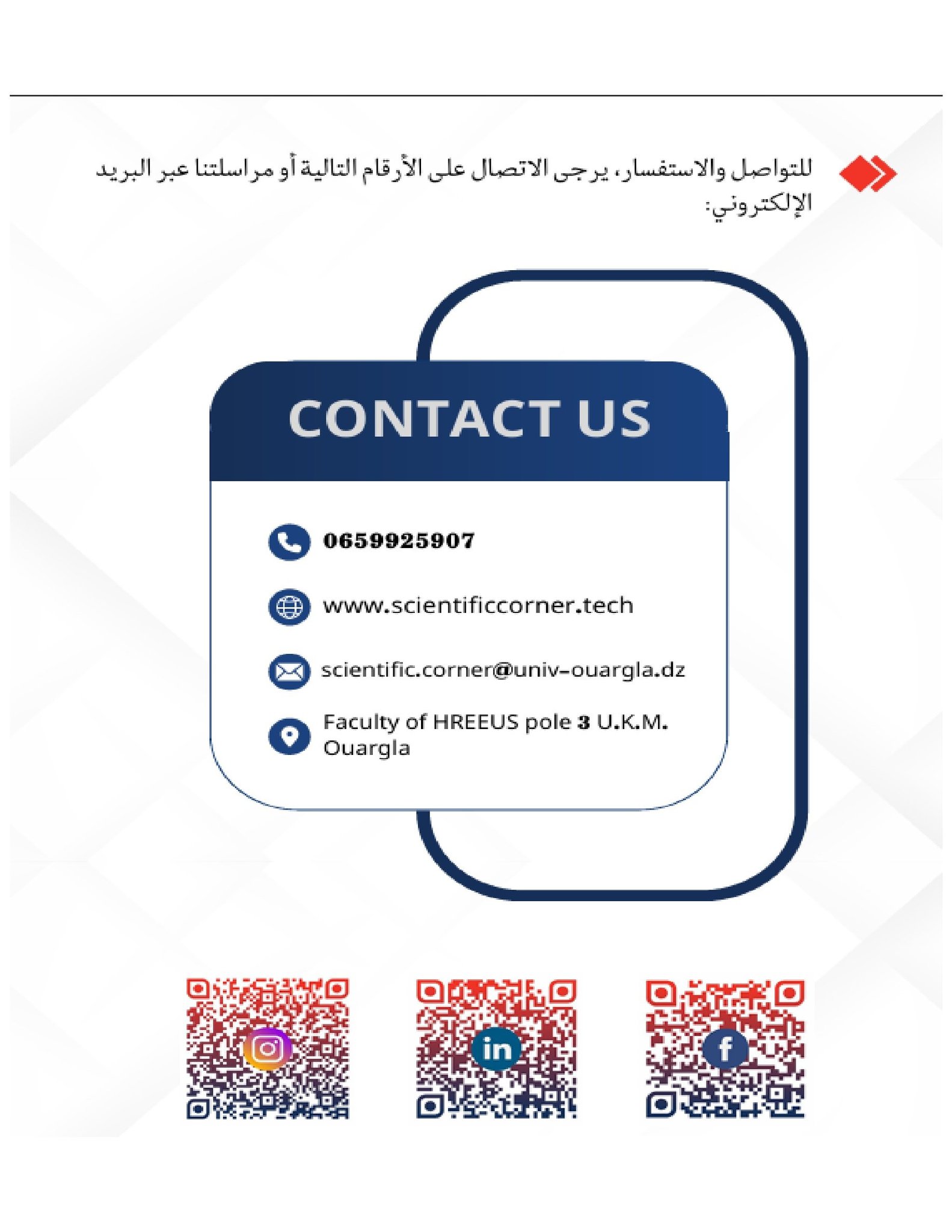 وللمزيد من الاستفسار يرجى الاتصال بالرقم: 06,59,92,59,07.