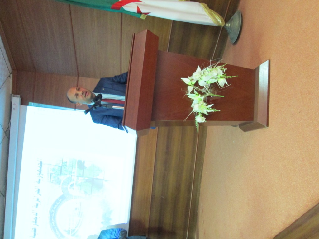 افتتح اليوم الدراسي بكلمة رئيس الفرقة واللجنة العلمية لليوم الدراسي الدكتور أسعيد مصطفى اضافة لرئيس ومسؤول اليوم الدراسي الاستاذ معمر عمار وكلمة رئيس القسم عشور عبد الكريم والسيد عميد الكلية الاستاذ دبابش عبد الرؤوف.