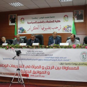 موضوع اليوم الدراسي استقطب نخبة من الأساتذة الذين قدموا من 20 مؤسسة جامعية وطنية لإثراء الموضوع وتبادل الأفكار ووجهات النظر ،مداخلات قيمة قسمت على ثلاث محاور :التأصيل المفاهيمي للمساواة بين الرجل والمرأة-المساواة بين الرجل والمرأة في التشريع الجزائري بالإضافة إلى المساواة بين الرجل والمرأة في المواثيق الدولية ،حيث تحدث المتدخلون عن مبدأ المساواة في العدل وقيمة الحقوق وكذا المساواة المعنوية التي تعطي لكل قدره وحقه في العيش الكريم ،اليوم الدراسي يهدف بالدرجة الأولى إلى الوقوف على أهم الأسباب الإجتماعية والنفسية ومختلف العوامل المؤدية للتمييز بين المرأة والرجل. اختتم هذا اللقاء العلمي بتلاوة جملة من التوصيات.