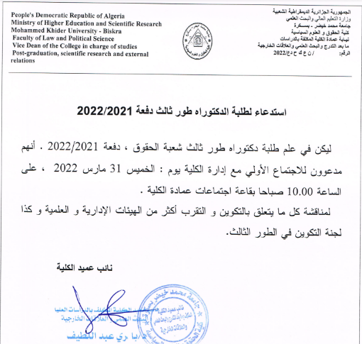 رزنامة متابعة طلبة الدكتوراه على مستوى المخابر2022-2023