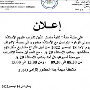 رزنامة متابعة طلبة الدكتوراه على مستوى المخابر2022-2023
