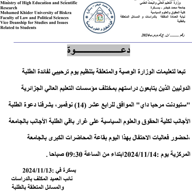 نيابة العمادة للدراسات و المسائل المرتبطة بالطلبة
