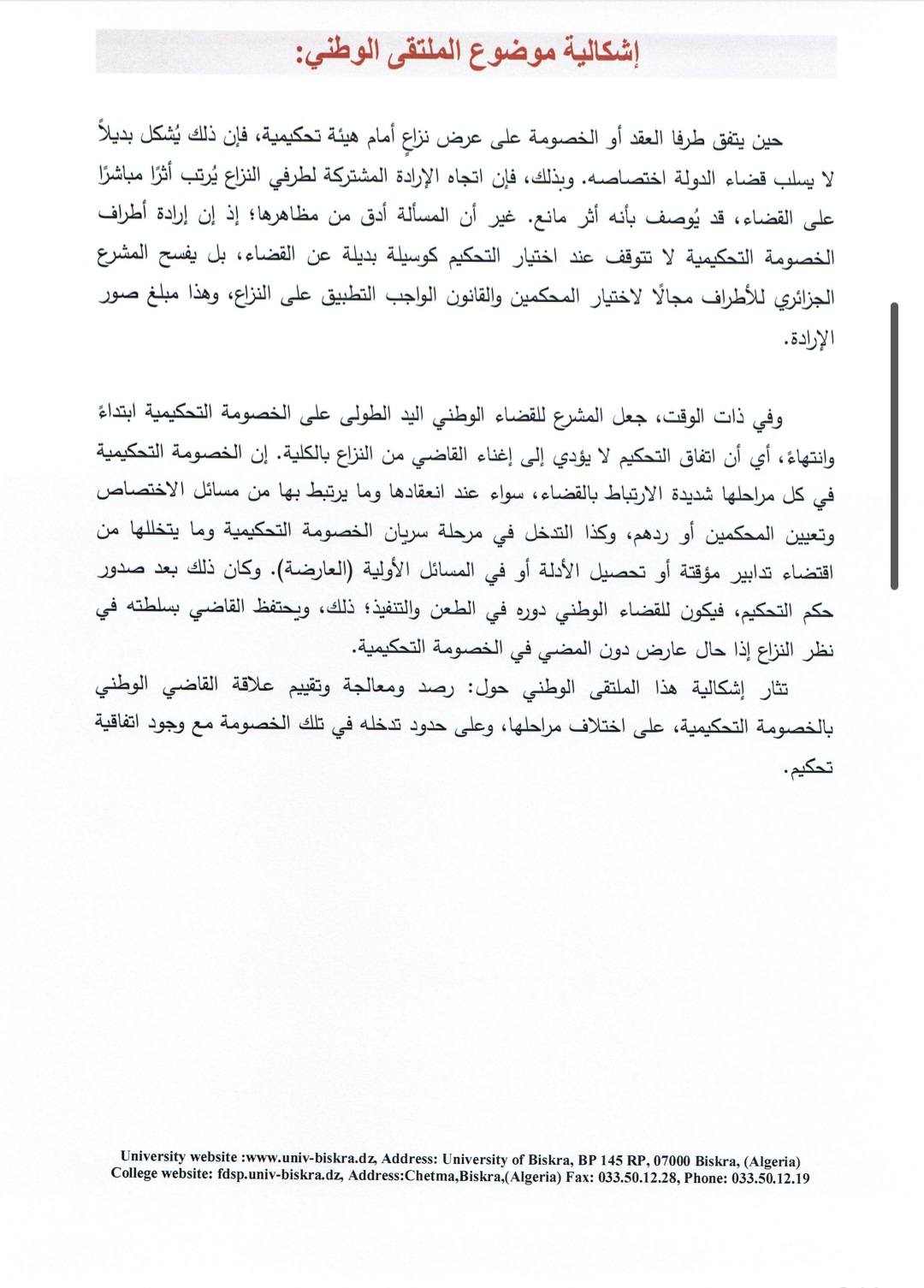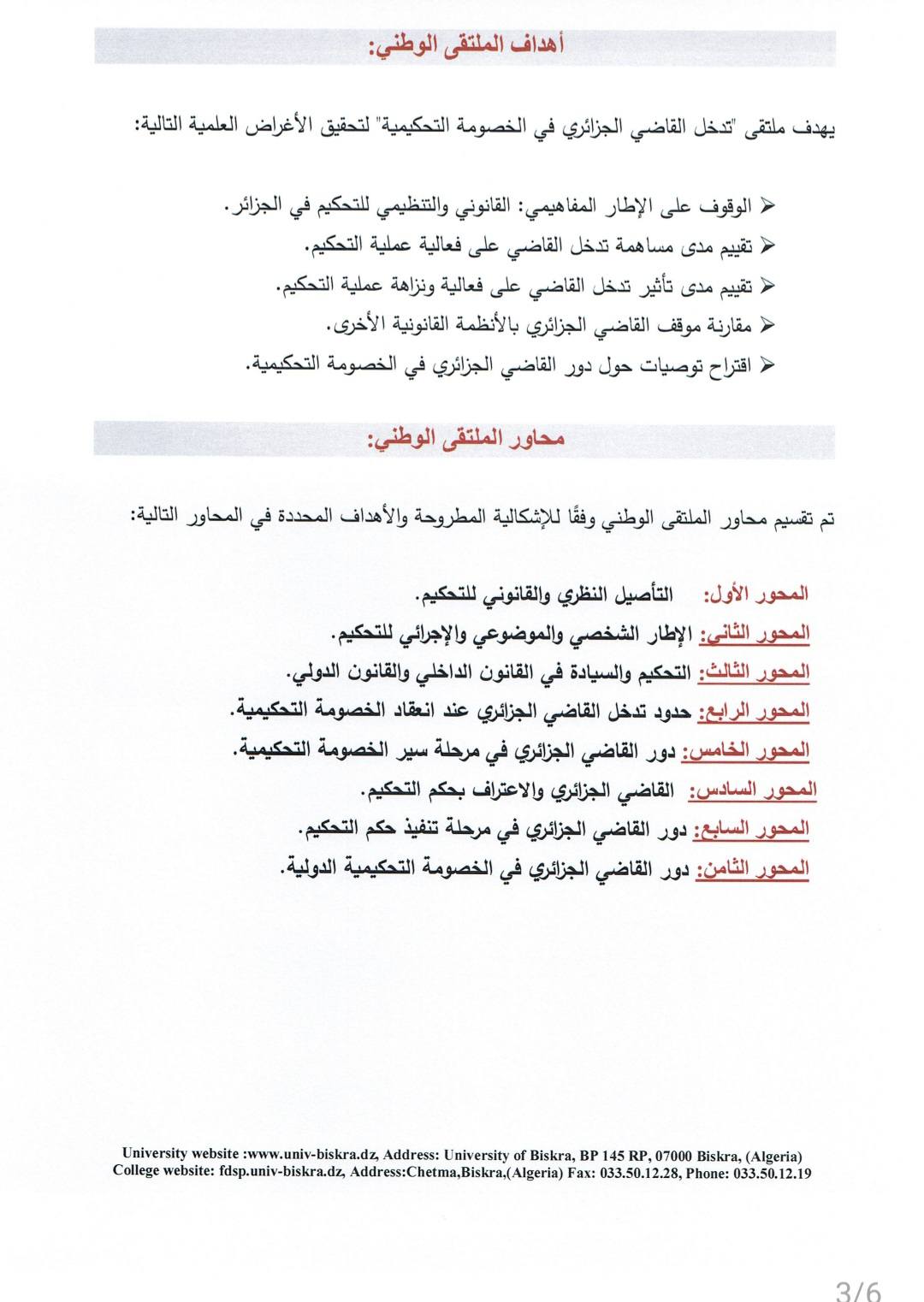 ملتقى وطني- تدخل القاضي الجزائري في الخصومة التحكيمية
