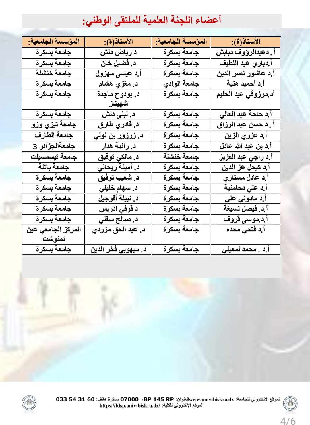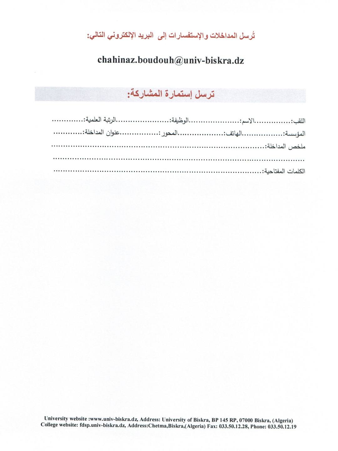 • العنوان : جامعة بسكرة- ص ب 145 ق ر-07000- بسكرة الجزائر