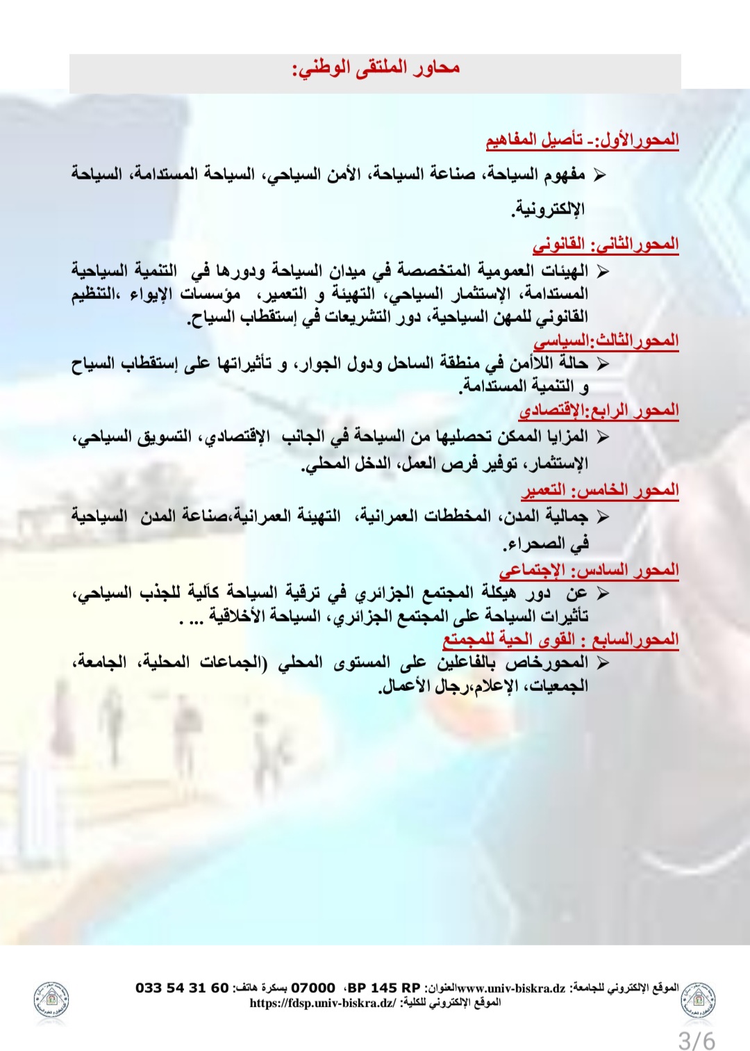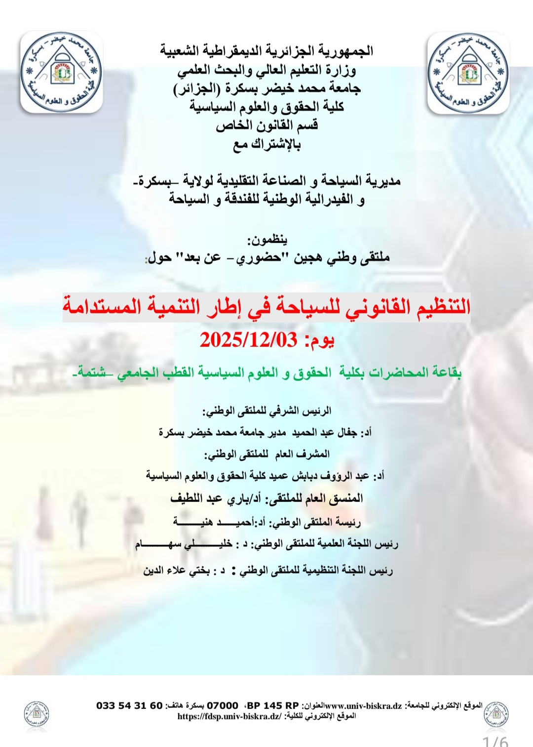 الملتقى الوطني حول: التنظيم القانوني للسياحة في اطار التنمية المستدامة