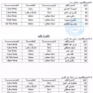 لجان المناقشات طبقا لمحضــر اجتمـــاع المجـــلس العلـــمي رقم 01-2021/2022بتاريخ 17/10/2021