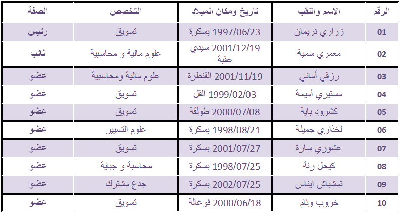 - الأعضاء المؤسسين: يحدد قائمة الاعضاء المؤسسين للنادي رقم 02/م.إ.ن/م.ج/2022