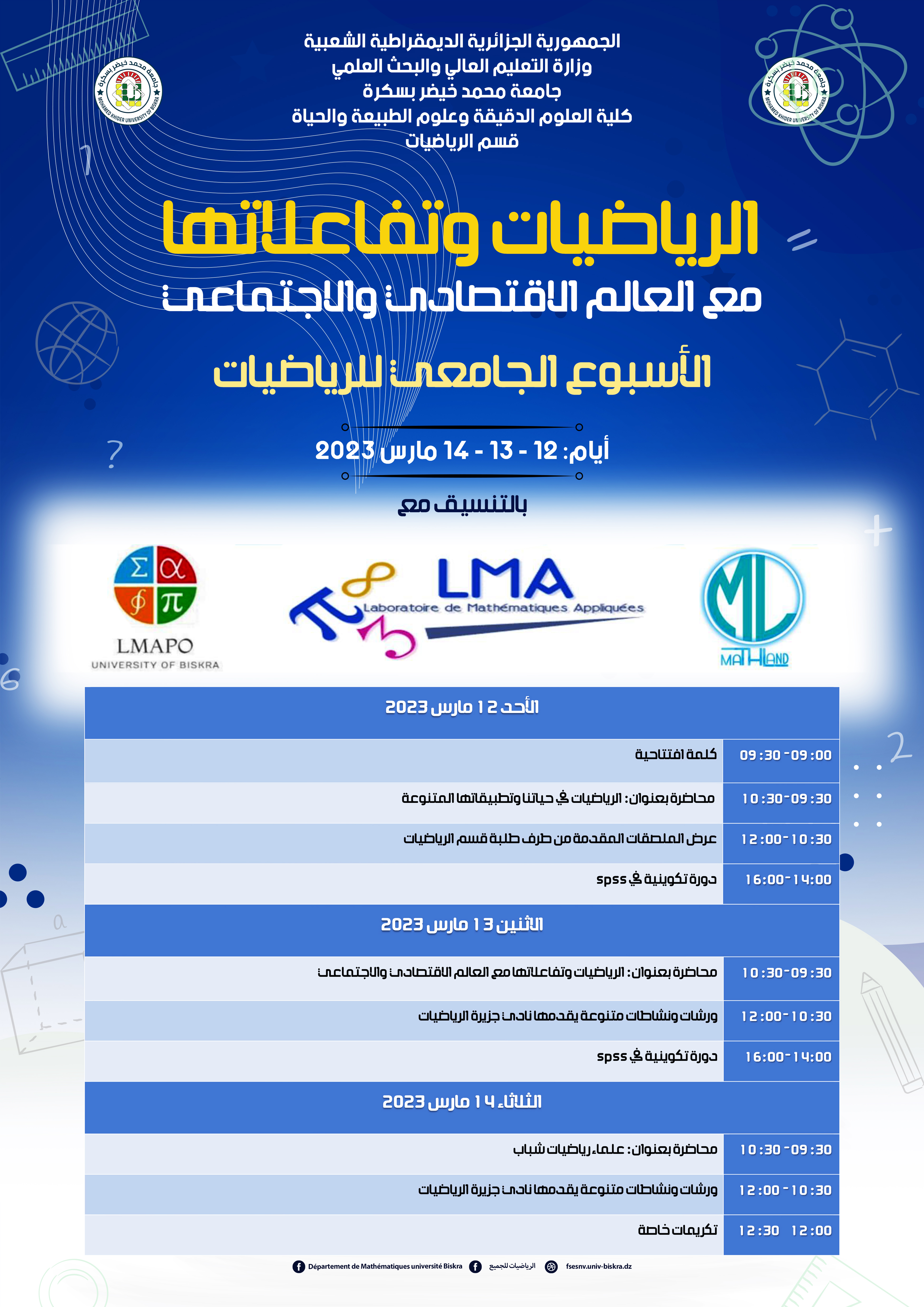 المنظم بقسم الرياضيات يوم 12-13-14مارس 2023 على الساعة التاسعة صباحا