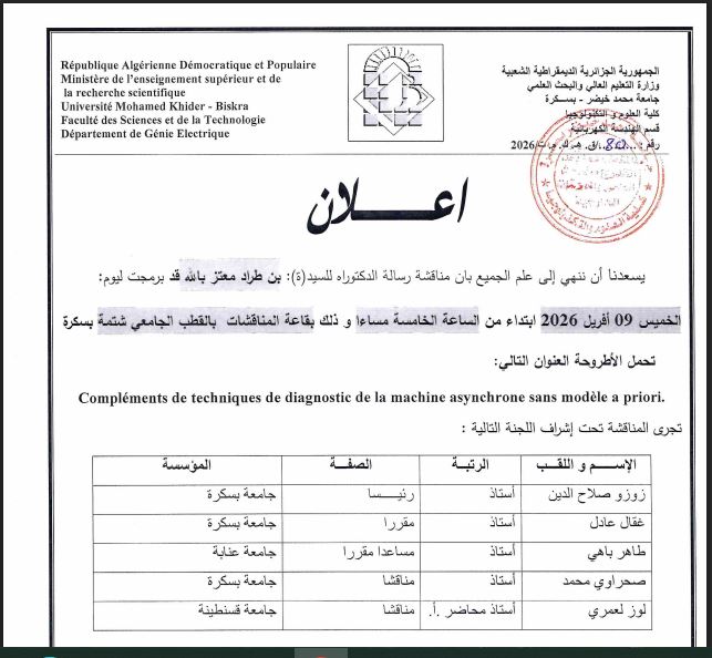 Mr. BEN TERAD Mootaz Billah le 09/04/2026