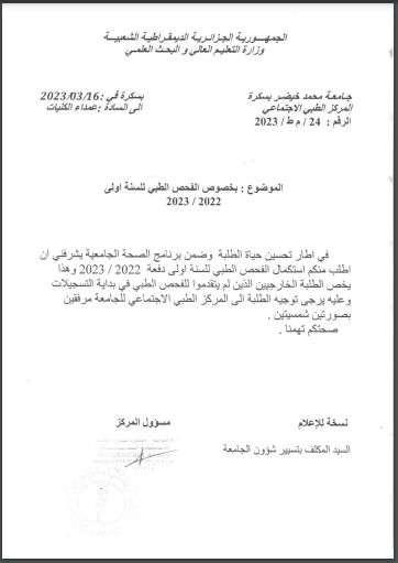 وعليه، يُطلب من الطلبة المعنيين الالتزام بالآجال المحددة بدقة.