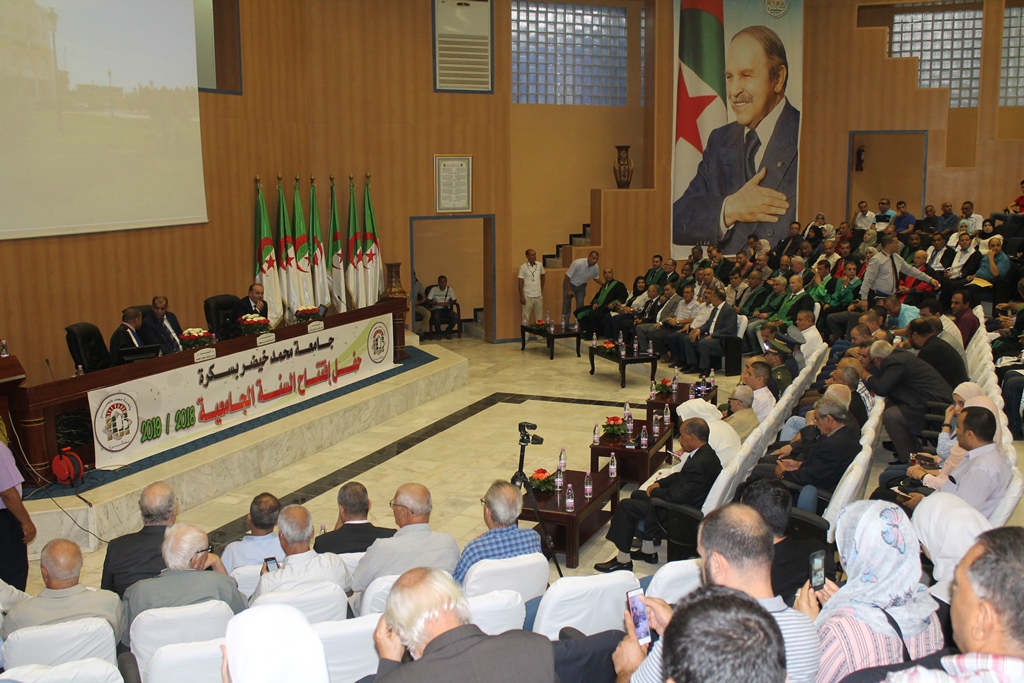 صبيحة 18 سبتمبر 2018 بقاعة المحاضرات الكبرى افتتحت جامعة بسكرة موسما جامعيا جديدا أشرف على إفتتاحه والي الولاية المحترم السيد أحمد كروم في جو يسوده التنظيم بحضور كل من السلطات المدنية والعسكرية، رئيس المجلس الشعبي الولائي، مدراء تنفيذيون، الأسرة الثورية ممثلة في أعضاء المنظمة الولائية للمجاهدين، إلى جانب أسرة الإعلام والأسرة الجامعية في مقدمتها مدير الجامعة الأستاذ الدكتور أحمد بوطرفاية وسط حضور مشرف للطلبة والعائلات.