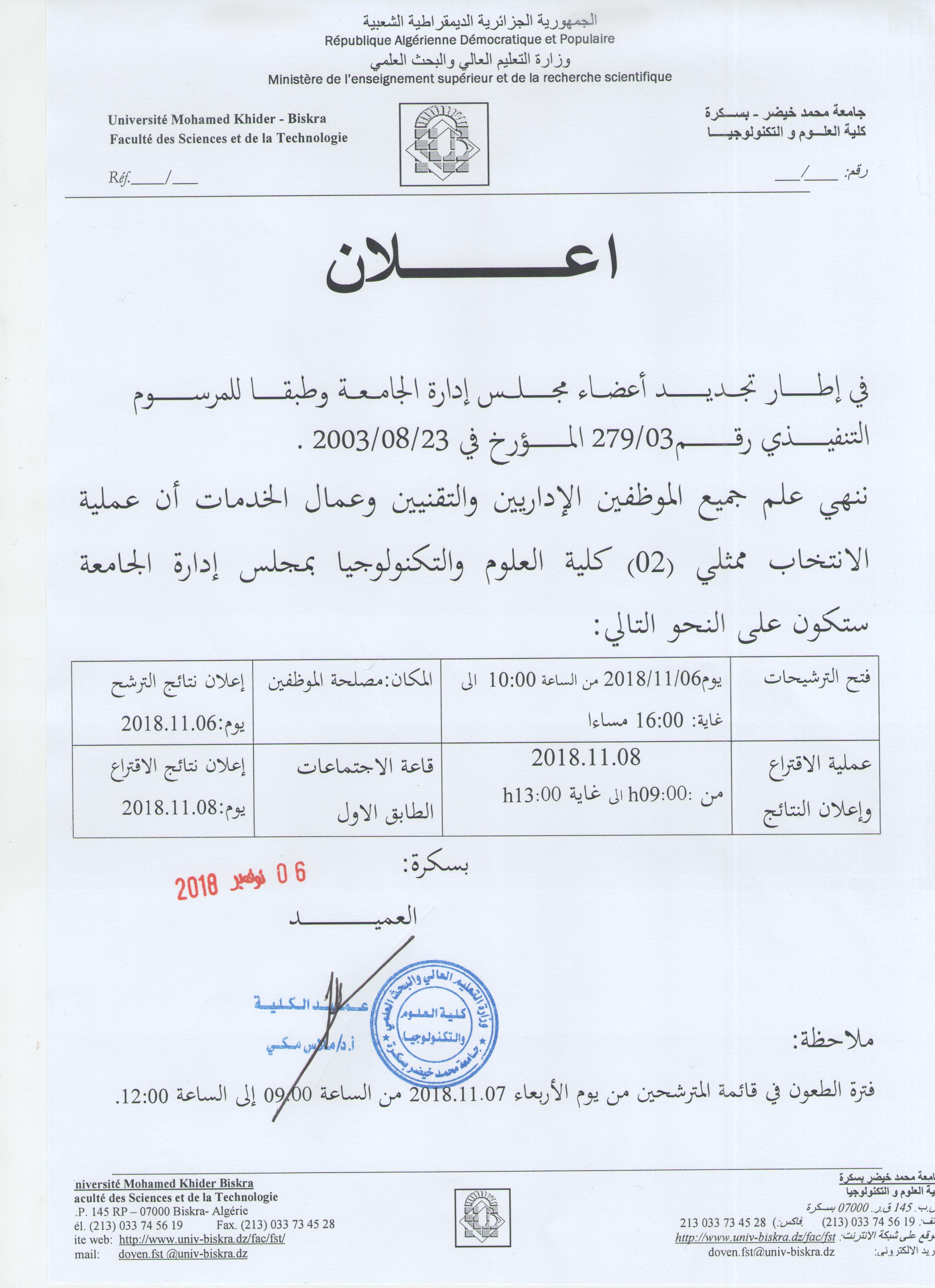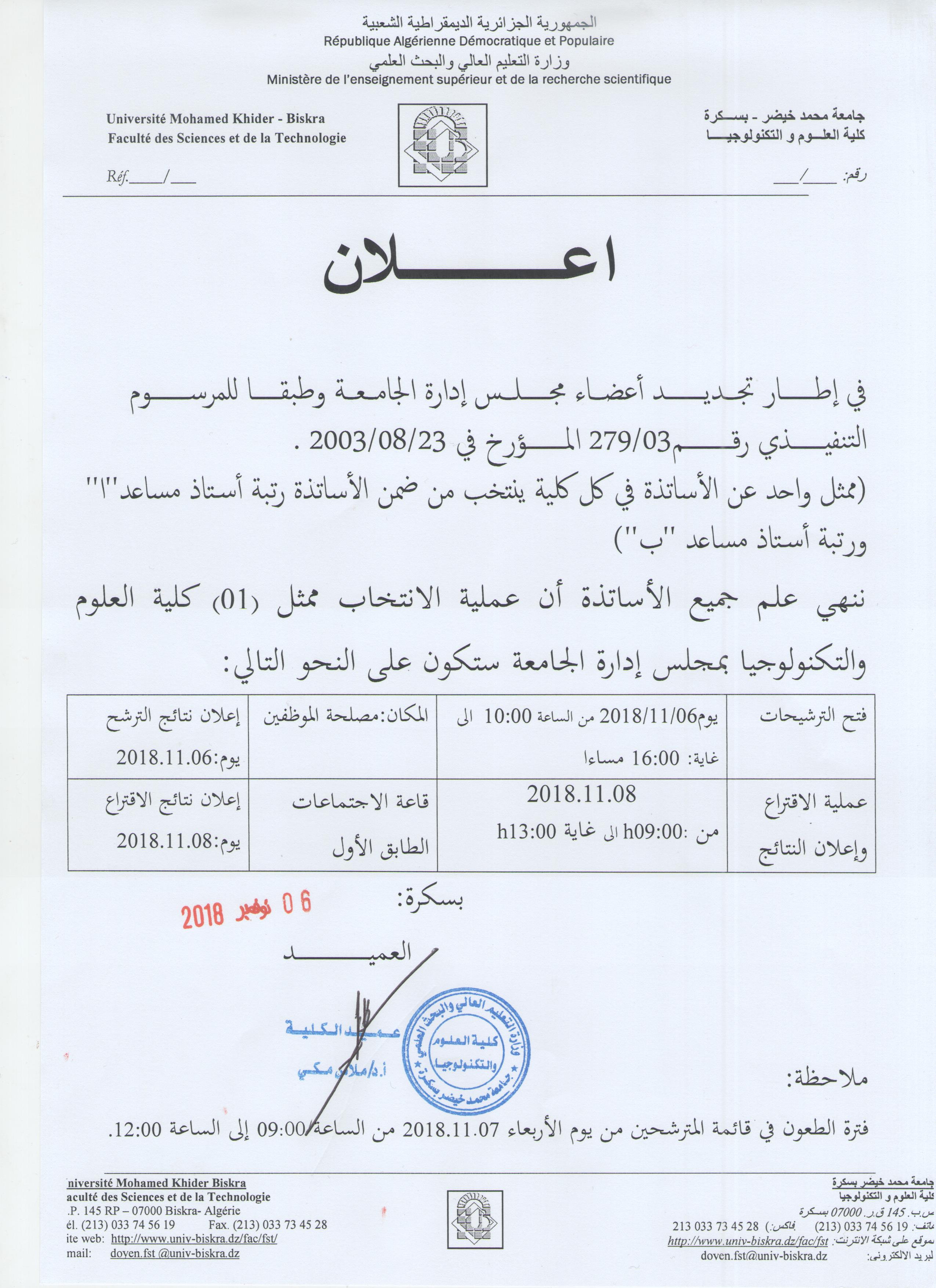 إعلان02 في إطار تجديد أعضاء مجلس إدارة الجامعة (خاص بالأساتذة)