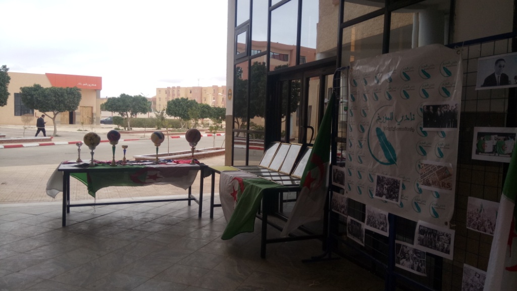 ✓ نادي إبن الهيثم، بدوره كان حاضرا وبقوة، من خلال تنظيمه لمسابقة في الشعر والإلقاءات الأدبية والفنية، أشرف عليها ثلة من الاستاذات في الإختصاص، حيث أشرفن على تقييم العروض المباشرة للطلبة، وتثمينها، وتمحيصها، في جو تلاحمت فيه عبارات التمجيد والتبجيل بتضحيات الشهداء والسلف من أجل نيل الحرية والإستقلال.