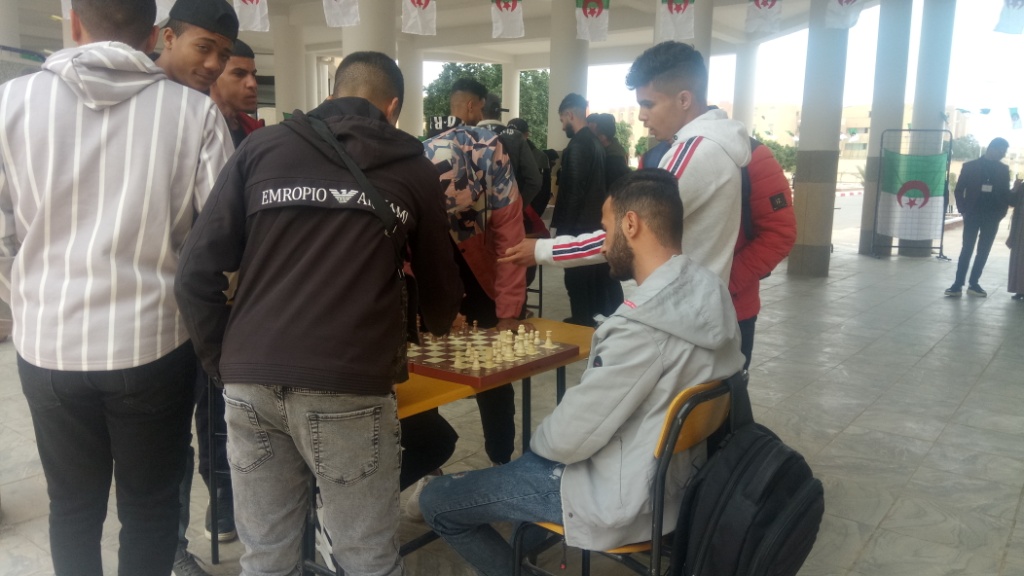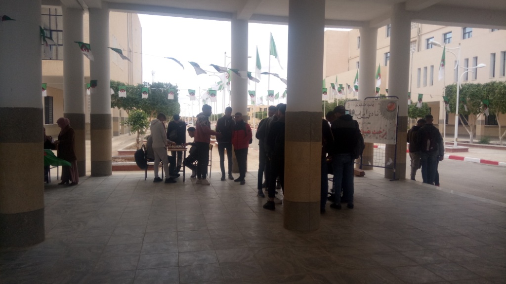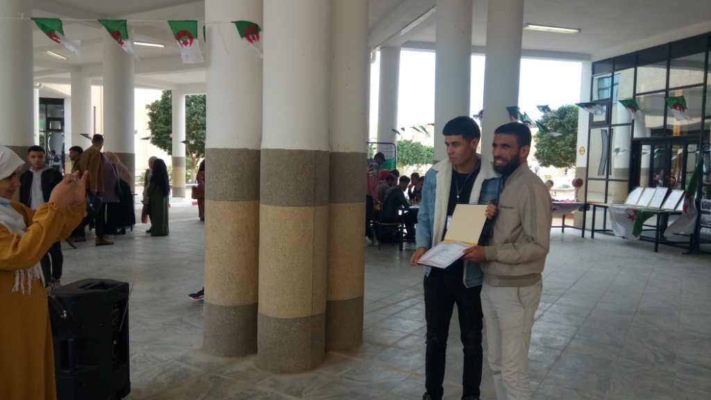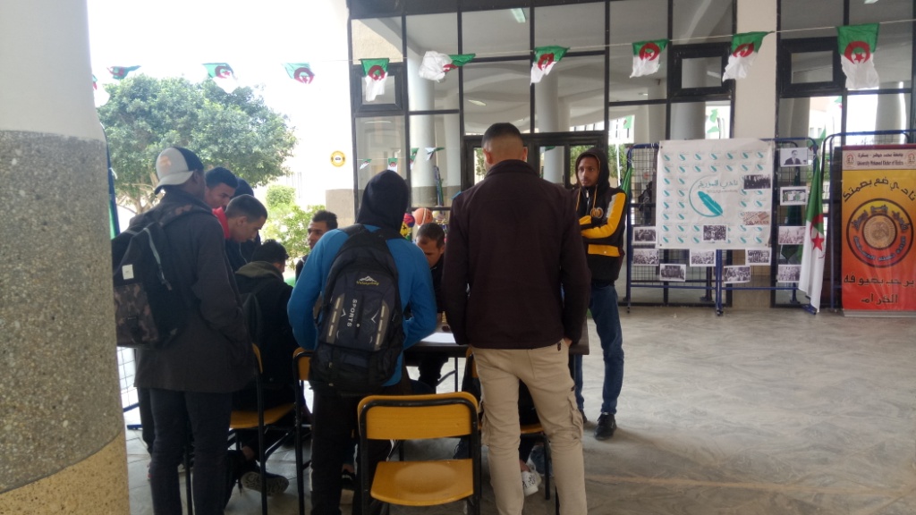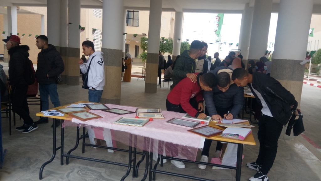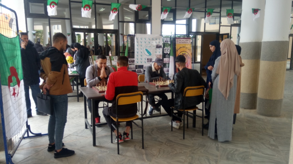 ✓ التظاهرة، تمثلت في إقامة معرض مفتوح لمصلحة النشاطات العلمية والثقافية والرياضية لذات الكلية مبرزة من خلال مطويات وزعت على الطلبة، كيفية الإنخراط في النوادي الطلابية وإثراء برامجها السنوية، إلى جانب معرض لصور الشهداء وسيرهم التاريخية. كما نظمت مسابقة للطلبة في الشطرنج.