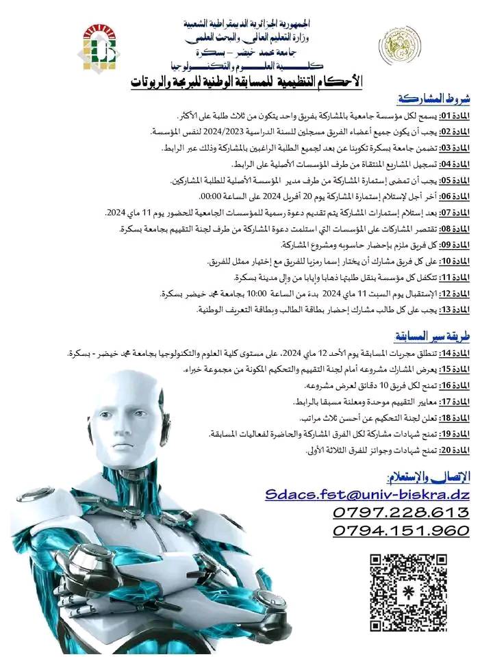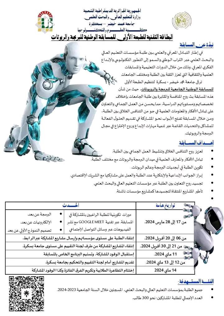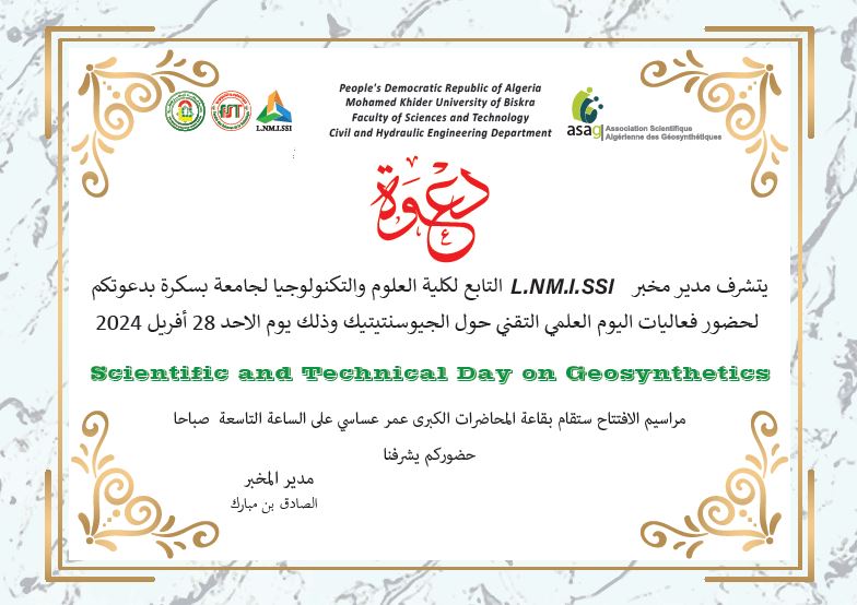 يتشرف عميد كلية العلوم والتكنولوجيا جامعة بسكرة بدعوتكم لحضور فعاليات الملتقى الدولي الثامن للصورة و الإشارة و تطبيقاتهما: