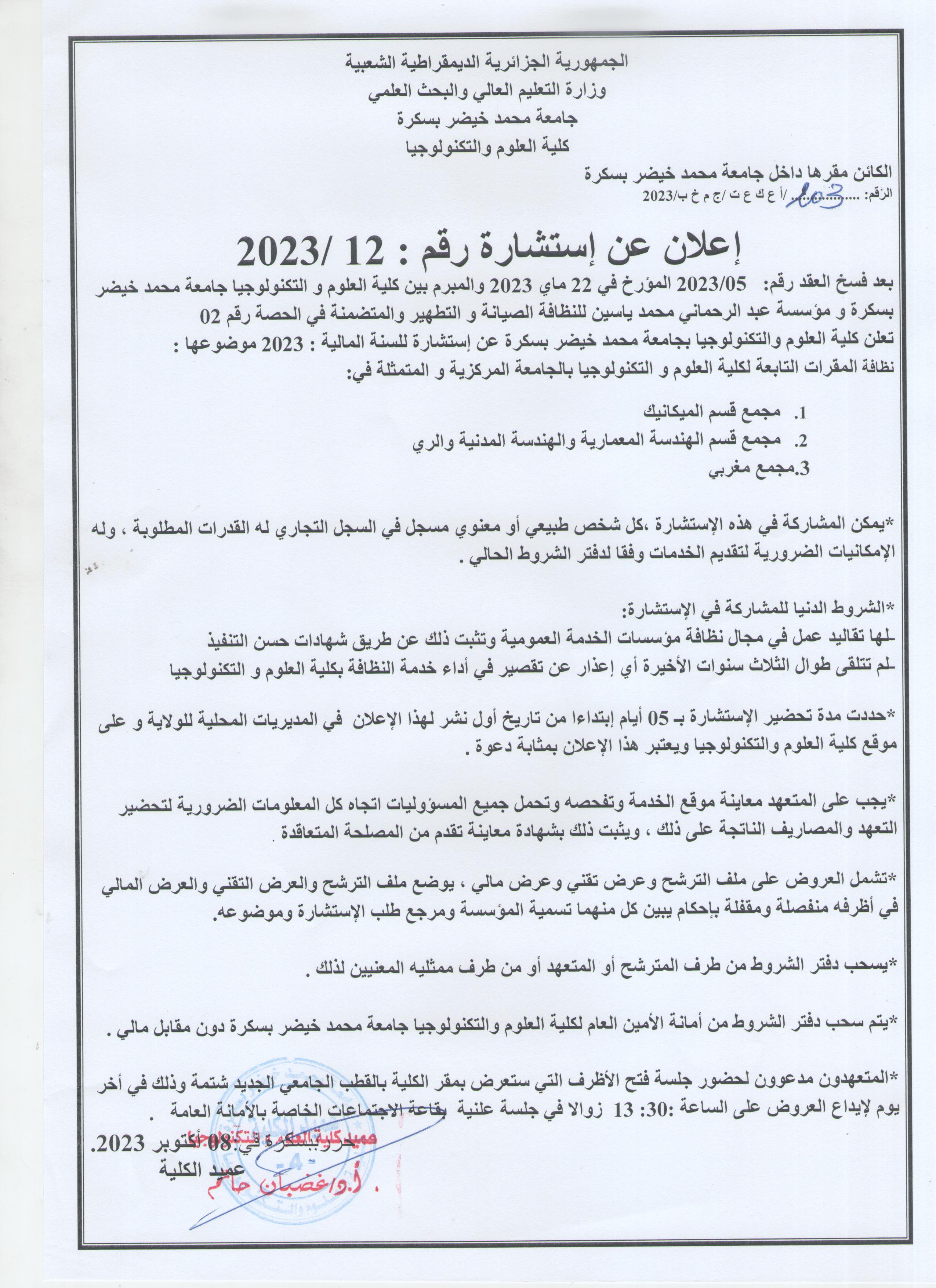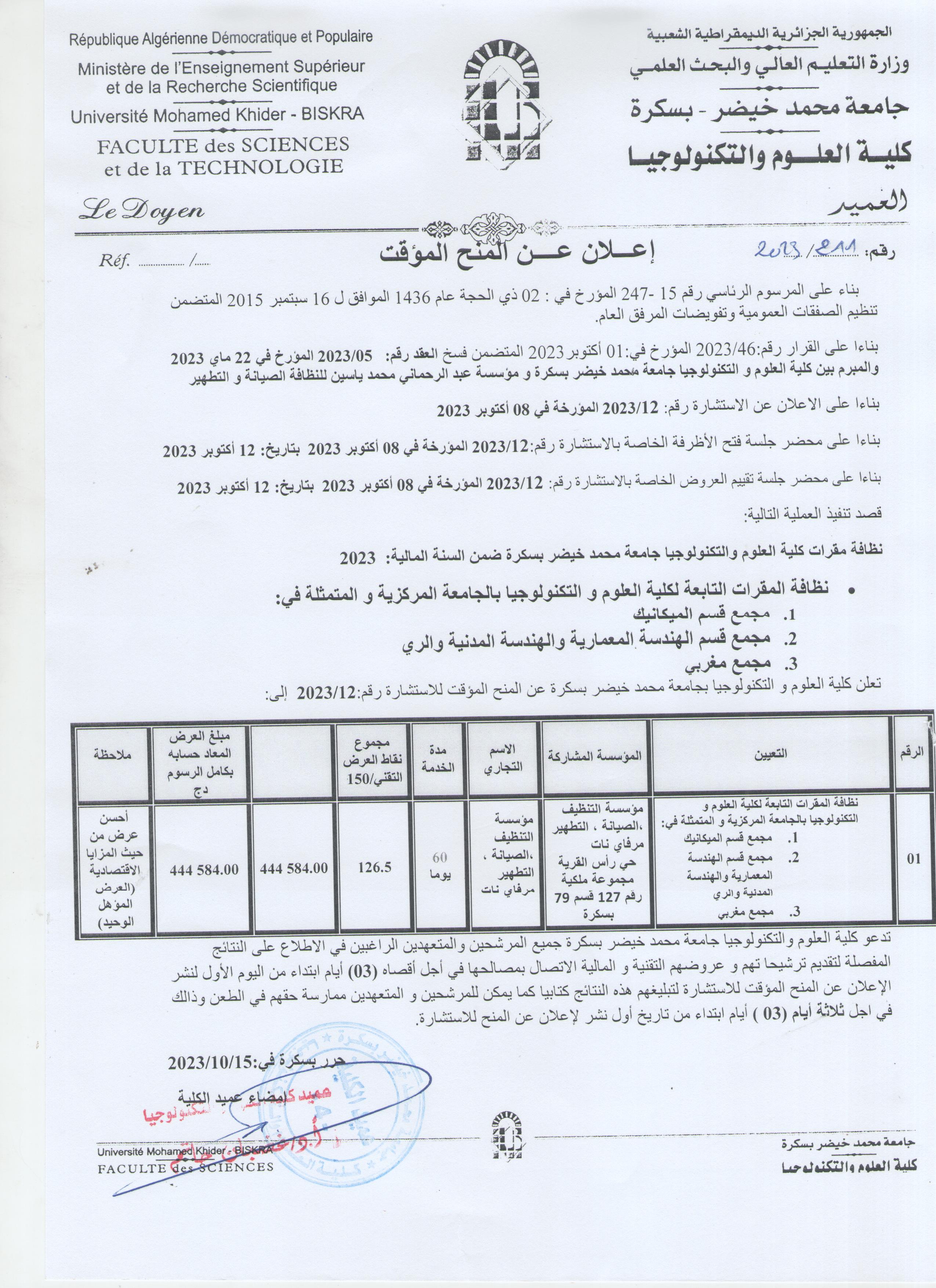 و شكرا لإدارة كلية العلوم و التكنولوجيا على هذا العرفان بالجميل لمن سبلوا حياتهم العملية في العطاء لتوفير أحسن ظروف العمل للآخرين.