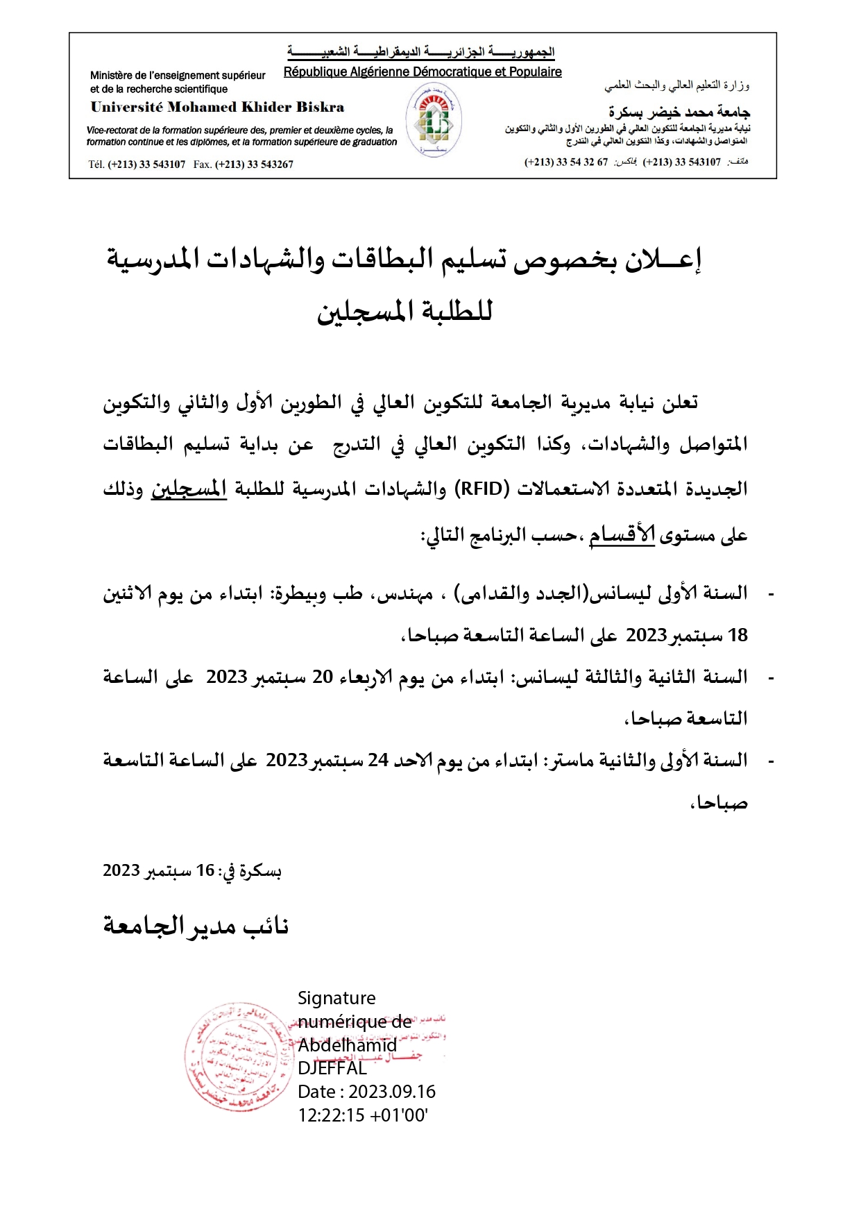 قائمة عروض التكوين المتوفرة في الجامعة: 2023-2024