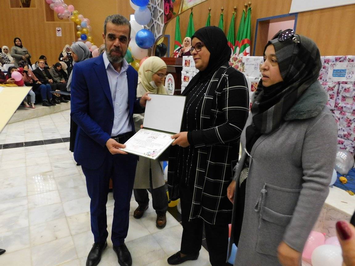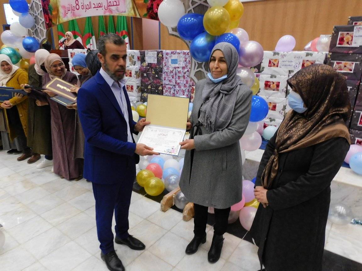 السيد عميد كلية العلوم والتكنولوجيا، الأستاذ حاتم غضبان، يشارك الأسرة الجامعية، إحتفالية اليوم العالمي للمرأة بجامعة بسكرة، بقاعة المحاضرات بالجامعة المركزية، أين تم تكريم ما يزيد عن 300 موظفة من أستاذات وإطارات التسيير الإداري بالجامعة.... كان هذا يوم الثامن مارس عام 2022.