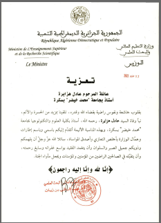 ببالغ من الحزن والأسى تلقت أسرة كلية العلوم والتكنولوجيا و قسم الهندسة الكهربائية جامعة محمد خيضر - بسكرة، نبأ وفاة المغفور له بإذن الله تعالى " الأستاذ " هزابرة عادل "