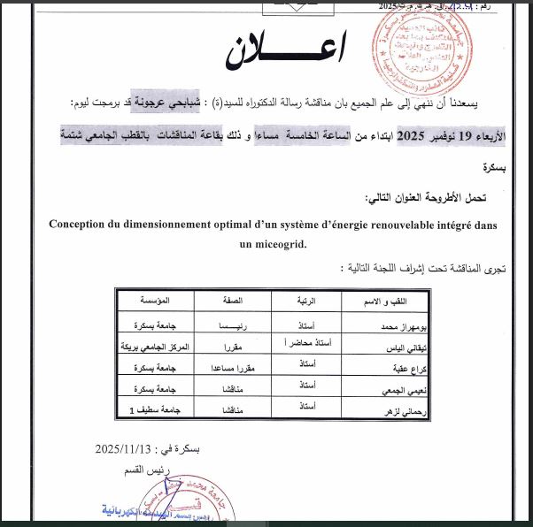 يوم 09/12/2025 بقاعة المحاضرات الكبرى كمال بولنوار بالقطب الجامعي شتمة.