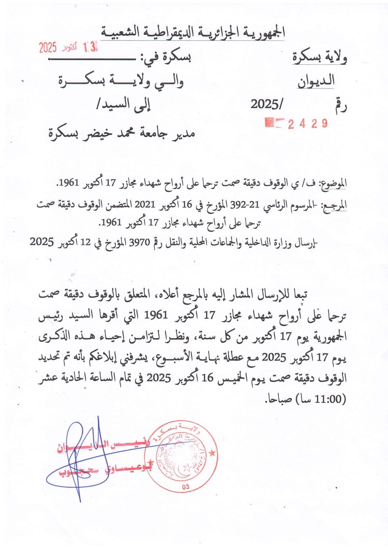 جامعة محمد خيضر ص ب 145 ق ر ، 07000 بسكرة ، الجزائر