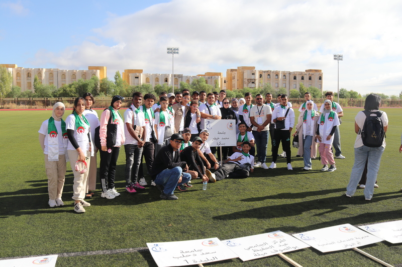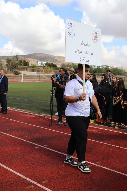وبإشراف الأستاذ الدكتور جفال عبد الحميد مدير جامعة محمد خيضر بسكرة والأستاذ الدكتور دشري حميد مدير معهد علوم وتقنيات النشاطات البدنية والرياضية شاركت جامعة بسكرة في هذا الافتتاح ممثلة من طرف طلبة معهد علوم وتقنيات النشاطات البدنية والرياضية كما شكّل هذا الموعد السنوي فرصة لتعزيز التبادل و التعارف بين طلبة مختلف الجامعات وإبراز دور الرياضة الجامعية كرافد أساسي لبناء شخصية متوازنة تجمع بين التفوق العلمي والممارسة الرياضية تحت شعار: "الرياضة الجامعية توحدنا ... العلم يرفعنا"