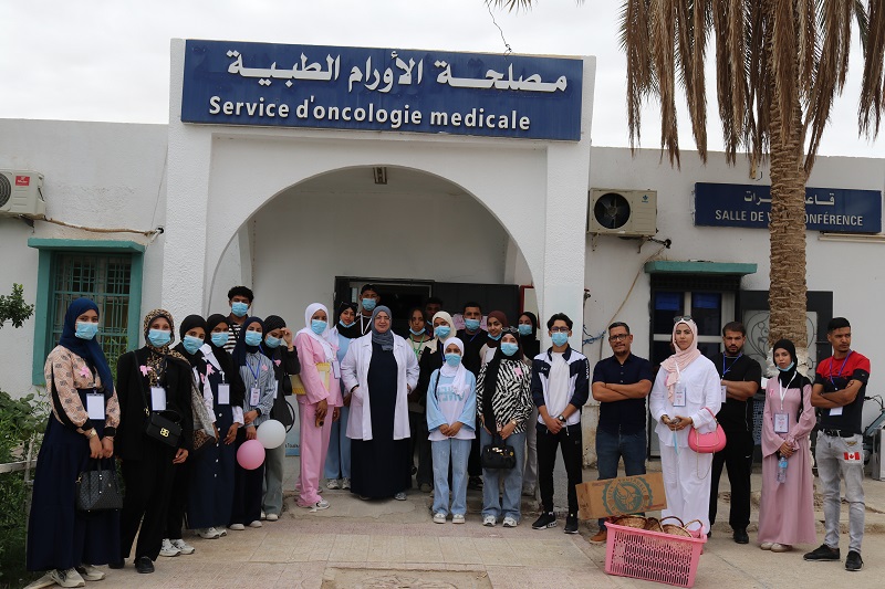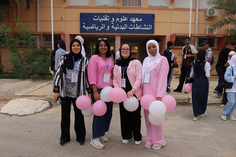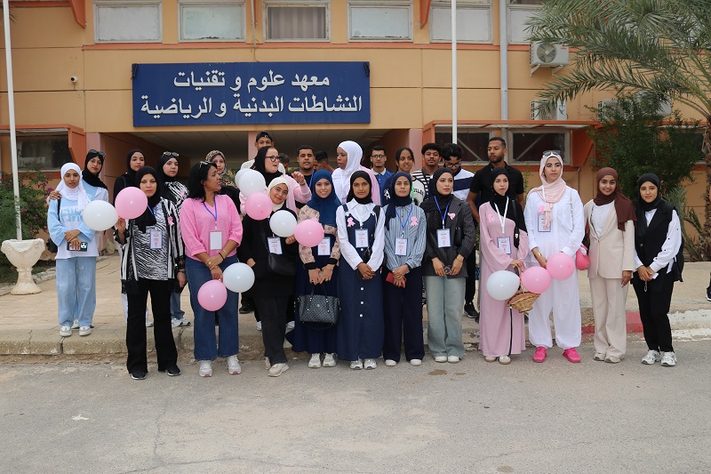 صباح يوم الأربعاء 29 أكتوبر 2025 وفي إطار نشاطات معهد علوم وتقنيات النشاطات البدنية والرياضية قام طلبة المعهد و بالتنسيق مع النادي الطلابي ISTPSA بزيارة ميدانية إلى مستشفى الحكيم سعدان مصلحة الأورام الطبية وهذا يندرج ضمن الحملة التحسيسية لشهر أكتوبر الوردي