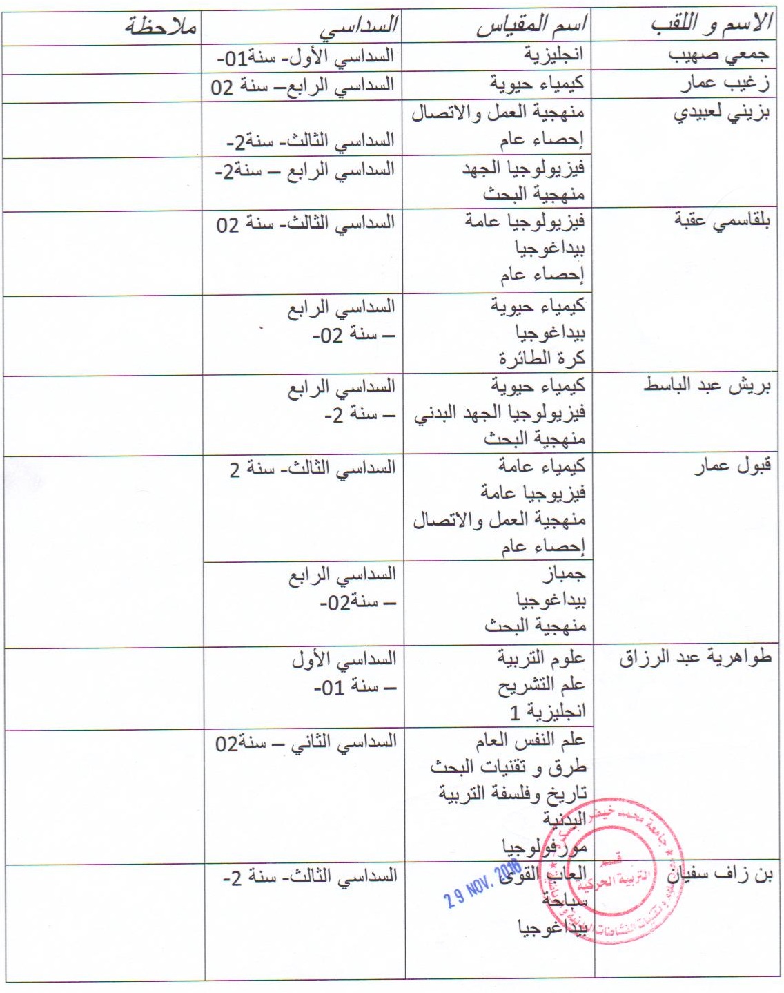 يعلن رئيس قسم الادارة و التسيير على وجود تحديث في التوزيع الزمني لجميع سنوات القسم والتوزيع الزمني للسنة الاولى جذع مشترك و كذلك هناك تغيير في قوائم الافواج للسنة الاولى جذع مشترك و ذلك على النحو التالي: