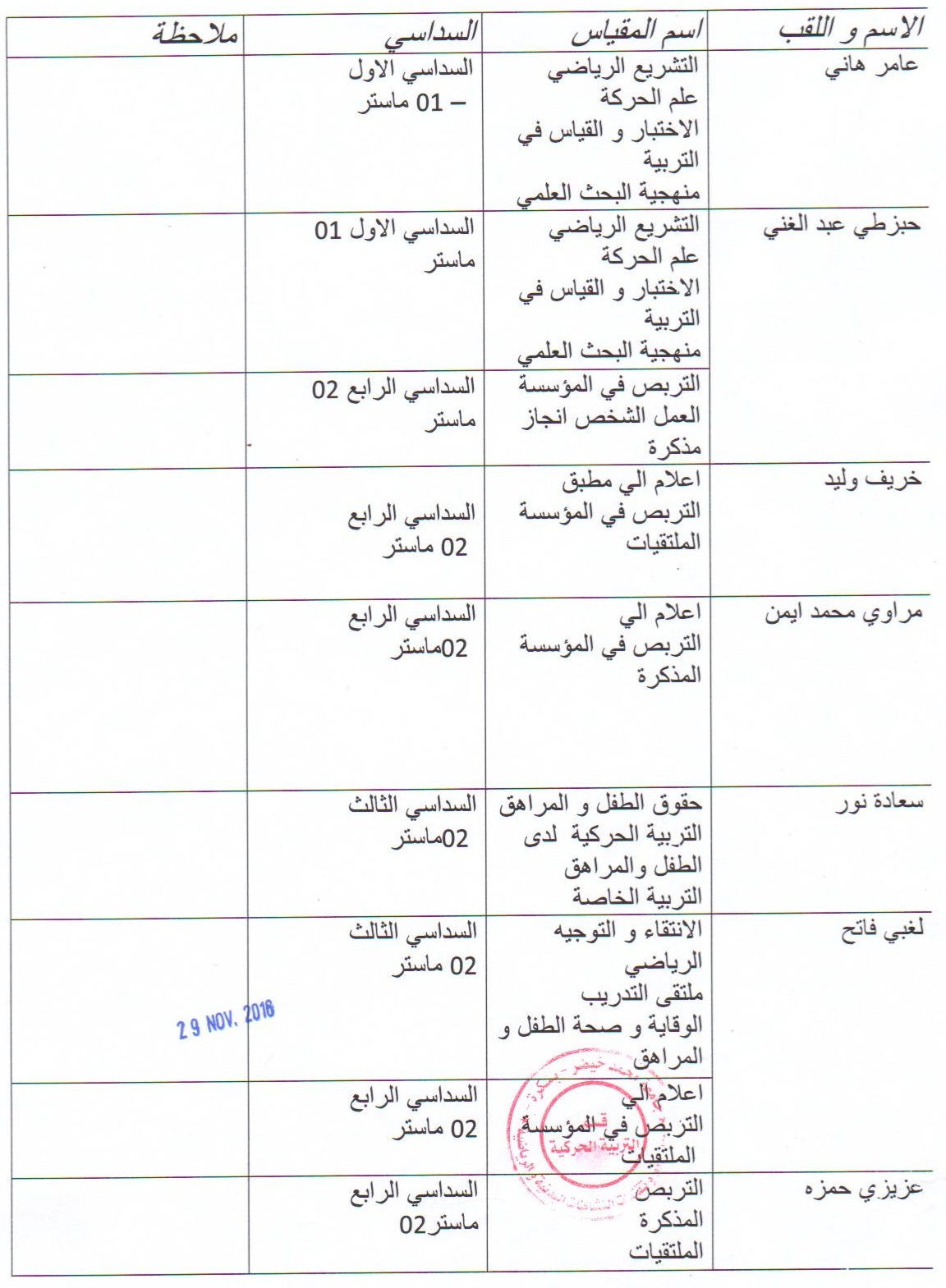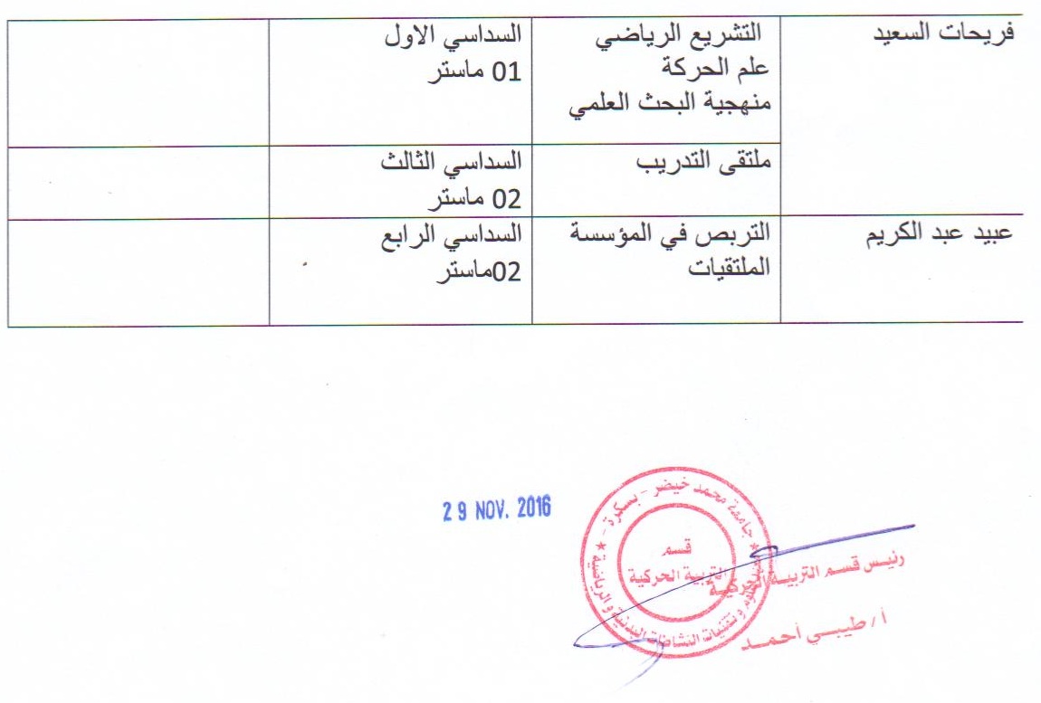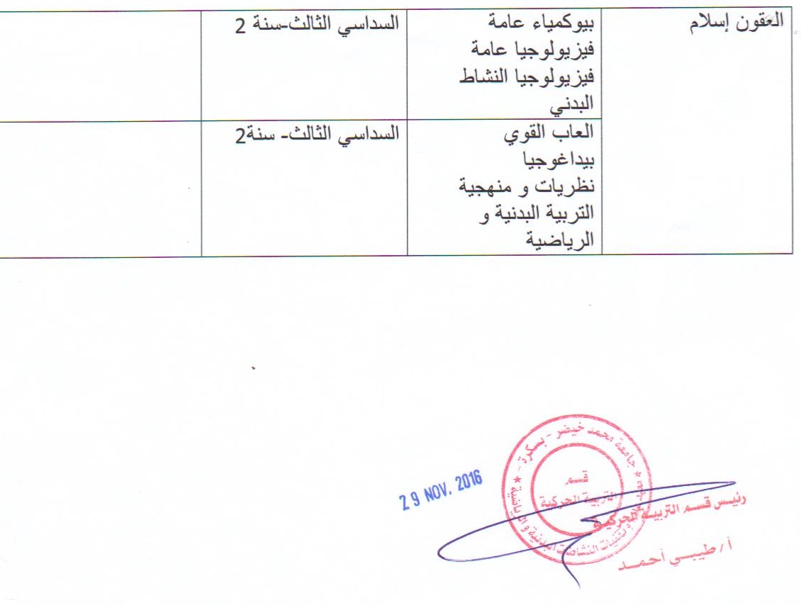 مركز إجراء مسابقة التكوين في الطور الثالث دكتوراه 2016 /2017 الخاصة بمعهد الرياضة بالقطب الجامعي شتمة يوم السبت 15 أكتوبر 2016 وذالك حسب الجدول التالي:
