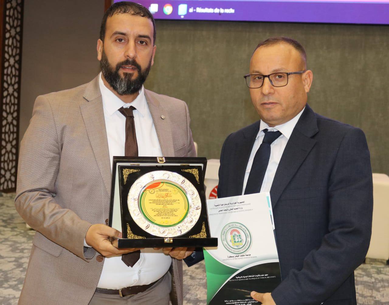#وشهد الملتقى تكريم عدد من الاساتذة والشخصيات الاكاديمية ذات الاسهام البارز في ميدان البحث العلمي وعلوم الرياضة، ويتعلق الامر بكل من الاستاذ قادري نور الدين مدير معهد علوم وتقنيات النشاطات البدنية والرياضية بجامعة ورقلة، والاستاذ بن قارة ياسين مدير المعهد بجامعة قسنطينة 2، والاستاذ قاسمي فيصل مدير المعهد بجامعة تبسة، الى جانب الاستاذ بزيو سليم مدير المدرسة العليا لعلوم الرياضة وتكنولوجياتها بالجزائر.